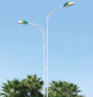 燈桿:錐形桿,一次成型,采用優質寶鋼Q235鋼材,厚度3到4mm,挑桿采用60mm直徑的鋼管,整體熱鍍鋅+噴塑處理,表面光滑,顏色基本一致,壽命不小于20年,焊接方式為自動氬弧焊接。