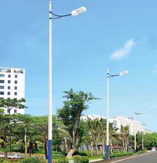 燈桿:錐形桿,一次成型,采用優質寶鋼Q235鋼材,厚度3到4mm,挑桿采用60mm直徑的鋼管,整體熱鍍鋅+噴塑處理,表面光滑,顏色基本一致,壽命不小于20年,焊接方式為自動氬弧焊接。