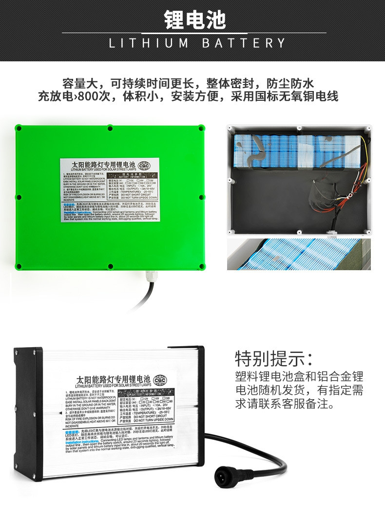 太陽(yáng)能鋰電池:12V系統(tǒng)電壓,品牌三元電芯,30AH鋰電池。