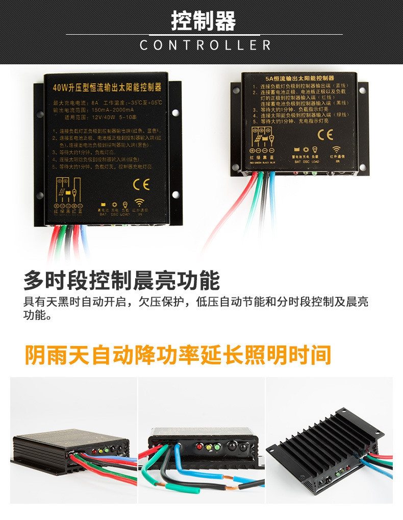 太陽(yáng)能燈具:金豆燈具,30W光源,美國(guó)普瑞LED芯片。